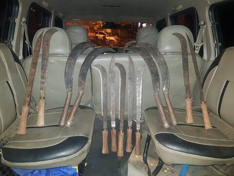 गौरतलब है कि जब पुलिस ने कार को रोका तो उसमें से एक-एक कर के 11 लोग निकलें. इसके बाद जब दोनों कारों की जांच की गई तो उसमें से एक-एक कर 18 हथियार निकले. इनमें से कुछ नए भी दिख रहे हैं जिन्हें ले जाने से पहले बनाया गया प्रतीत हो रहा है. तस्वीरों को देखें तो यह भी पता चलता है कि उन्हें धार भी दी गई थी.