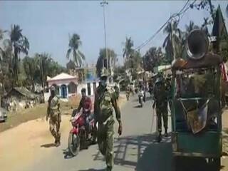 -उतर चौबीस परगना के राजरहाट में रूट मार्च के दौरान केंद्रीय सुरक्षा बल के कई जवानों के चेहरे पर 'जय बांग्ला' मास्क लिखा दिखा. टीएमसी का स्लोगन है - जय बांग्ला.