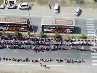 Surat में मजदूरों की लंबी कतारें, घर जाने के लिए अपनी बारी का इंतजार